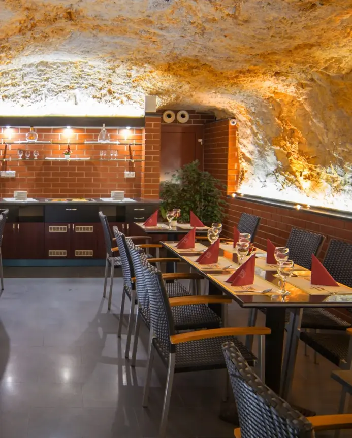 Clients can choose from half board or full board. Breakfast is served in the form of a buffet. Vegetable salads are served buffet style during lunch and dinner. Main meals are served and clients choose from a selection of several dishes.